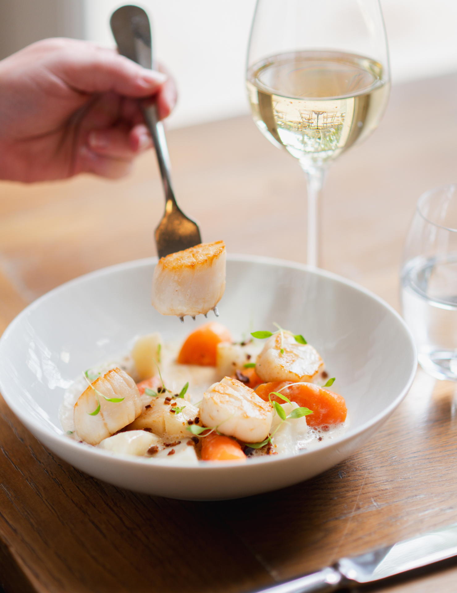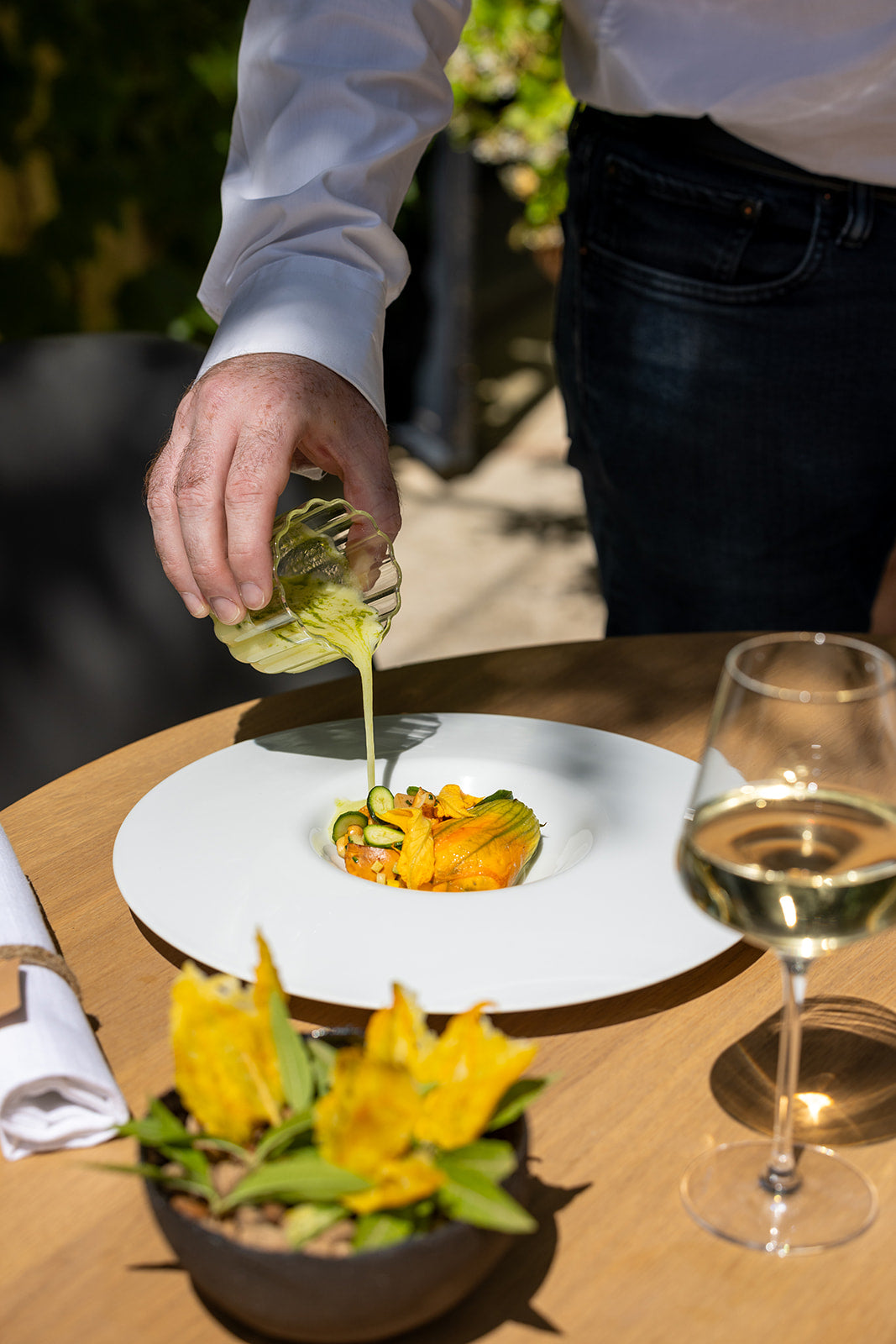 Ce vin complexe offre de multiples possibilités d'accords : il s’harmonisera naturellement avec des viandes blanches en sauce, mais saura également vous surprendre en accompagnant des mets terre-mer, tels que des seiches au chorizo.